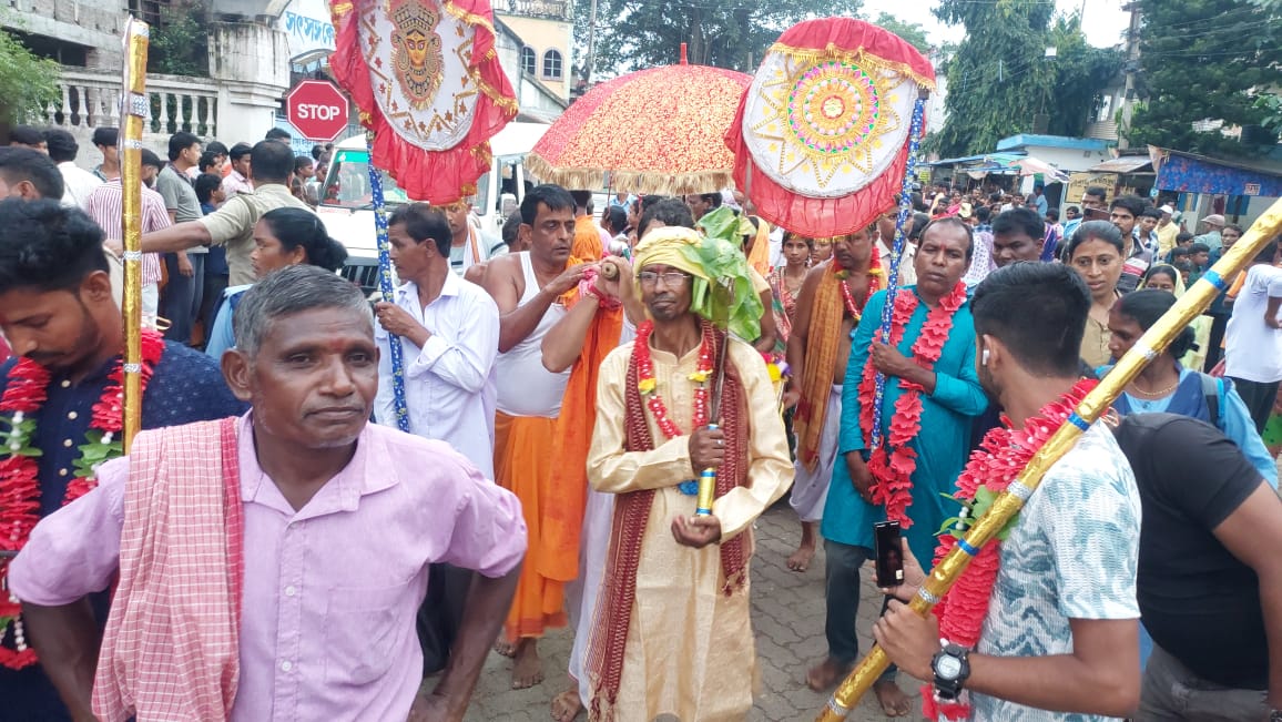শুভদীপ ঋজু মন্ডল বাঁকুড়া:—-যথাযোগ্য মর্যাদায় শোভাযাত্রা সহকারে রাইপুরের চাঁন্দুডাঙ্গা গ্রামের মা মহামায়া মন্দির থেকে রাজলক্ষ্মীকে স্বস্থানে অর্থাৎ হরিহর গঞ্জগড় রাজ পরিবারের লক্ষ্মী জনার্দন মন্দিরে পৌঁছে দেওয়া হল। এখানে উল্লেখ্য প্রতি বর্ষ সির দিন শোভাযাত্রা সহকারে তোপধ্বনি রমধ্য দিয়ে রাজ পরিবারের মন্দির থেকে রাজলক্ষ্মীকে মহামায়া মন্দিরে নিয়ে আসা হয়। এখানে তিন দিন মা লক্ষ্মী দুর্গা রূপে পূজা হন দশমীর পুজো শেষে আবার তাকে রাজ পরিবারের মন্দিরে রেখে আসা হয় এটাই নিয়ম ও রীতি হিসেবে দীর্ঘ প্রায় ৩০০ বছর ধরে চলে আসছে। রাজ পরিবারের বর্তমান রাজা গোপীনাথ সিংহ দেব বলেন আমার বাপ ঠাকুরদার আমল থেকে আমরা এই নিয়ম দেখে আসছি। এবারও তার কোন ব্যতিক্রম ঘটেনি। এটাই রাজ পরিবারের ঐতিহ্য ।রাজ পরিবারের কুলদেবীকে মহামায়া মন্দিরের নিয়ে যাওয়া হয়। মোঃ মন্দিরে অষ্টমীর দিন যে পুজো হয় তার সমস্ত দায়ভার বহন করে রাজ পরিবার। অষ্টমীর দিন যে চাল কুমড়ো আঁখ ও পাঁঠা বলি হয় সেগুলো রাজ পরিবার থেকেই মন্দিরে পাঠানো হয়। বলি দেওয়া পাঁঠা রাজ পরিবারের প্রাঙ্গণে মাটিতে পুঁতে দেওয়া হয়। অতীতে নাকি মহামায়া মন্দিরে অষ্টমীর দিন নরবলি দেওয়া হতো রাজা দুর্জন সিংহের আমল থেকে নর বলির বদলে পাঁঠা বলি চালু হয়। তিনবার তোপধ্বনী এর মধ্য দিয়ে সন্ধিপূজো শেষ হয়।