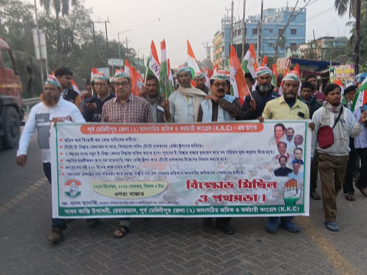 পূর্ব মেদিনীপুর জেলা (২) অসংগঠিত শ্রমিক ও কর্মচারী কংগ্রেস (K.K.C) – এর ডাকে এগরা শহরে বিক্ষোভ মিছিল ও পথসভা হয়।