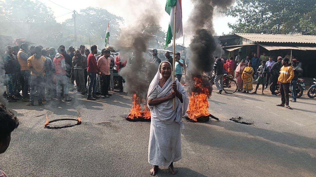 ভাতারে টায়ার জ্বালিয়ে এসআইআর বিক্ষোভ