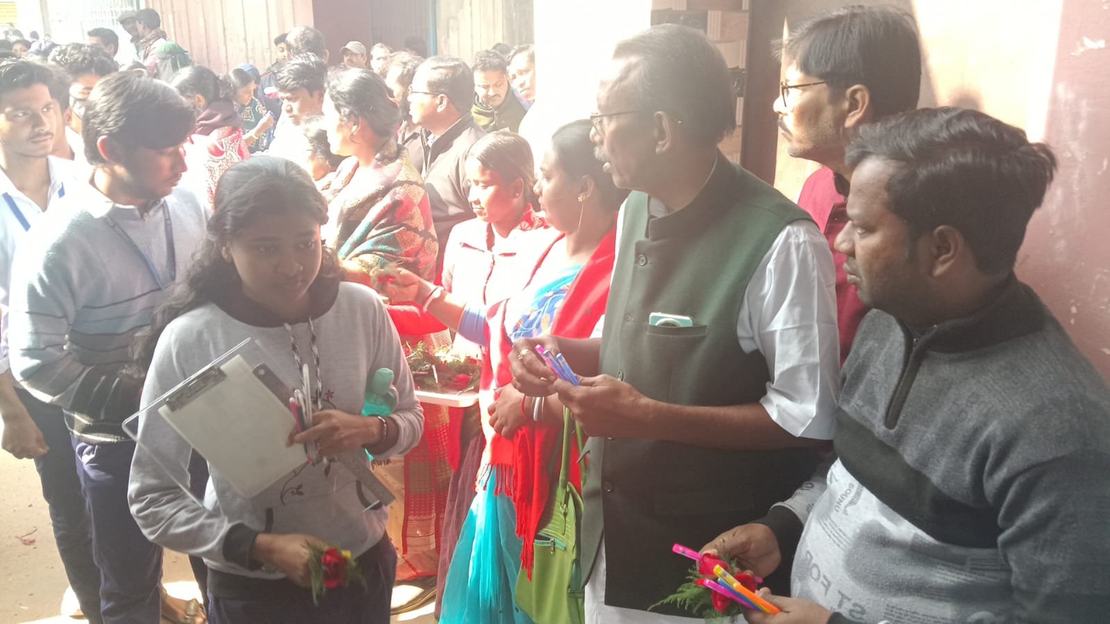মাধ্যমিক পরীক্ষার্থীদের ব্লক পেন ও গোলাপ দিয়ে শুভেচ্ছা